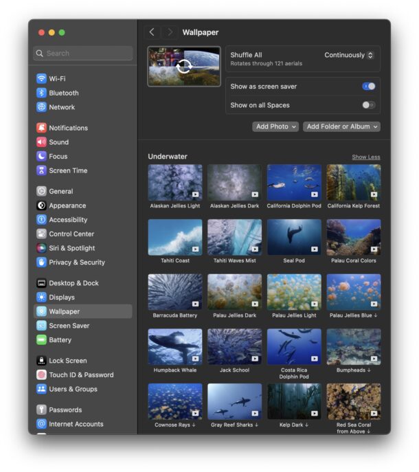 В macOS Sonoma добавили больше сотни потрясающих заставок: шикарные пейзажи, городские виды, подводные сцены, Земля из космоса и не только.
