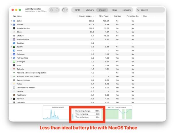 Жалобы на автономность в macOS Tahoe разбросаны по всему интернету. Лично я тоже заметил серьезное падение времени работы на своем MacBook Air после обновления.