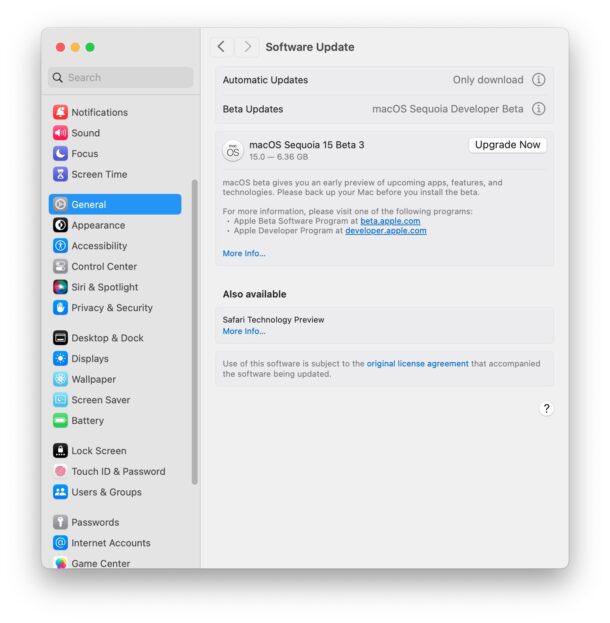 - Нажмите "Обновить сейчас" для macOS Sequoia 15 developer beta 3.
