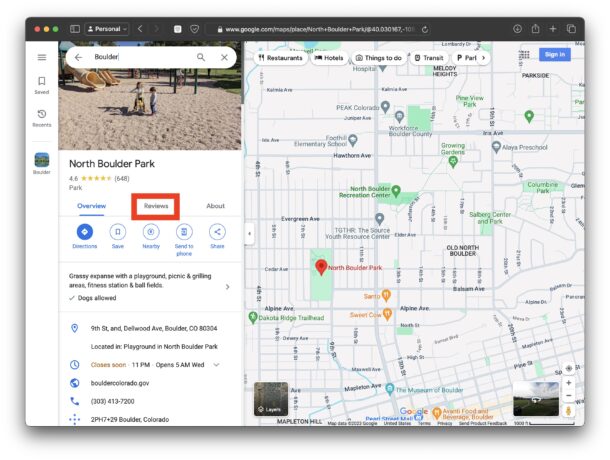 - Нажмите на вкладку "Отзывы" для этого места в Google Картах.