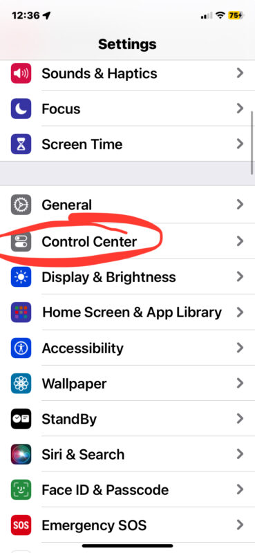 - Прокрутите список вниз, найдите «Позвонить на часы» и нажмите кнопку с плюсом (+), чтобы добавить ее в Пункт управления.