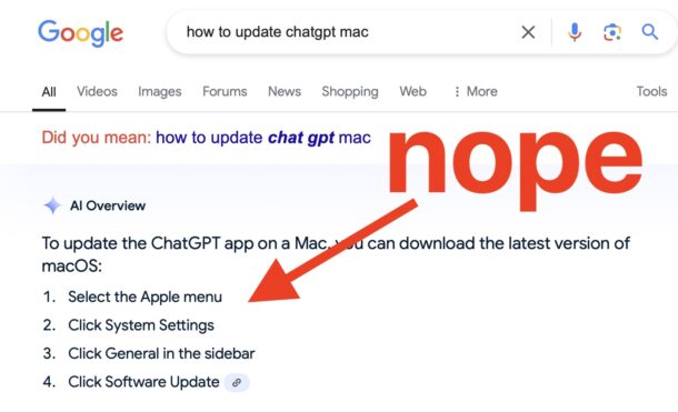 Забавно, но ИИ от Google даёт неверные инструкции по обновлению ChatGPT на Mac