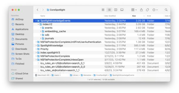 Как очистить раздутую папку CoreSpotlight на Mac