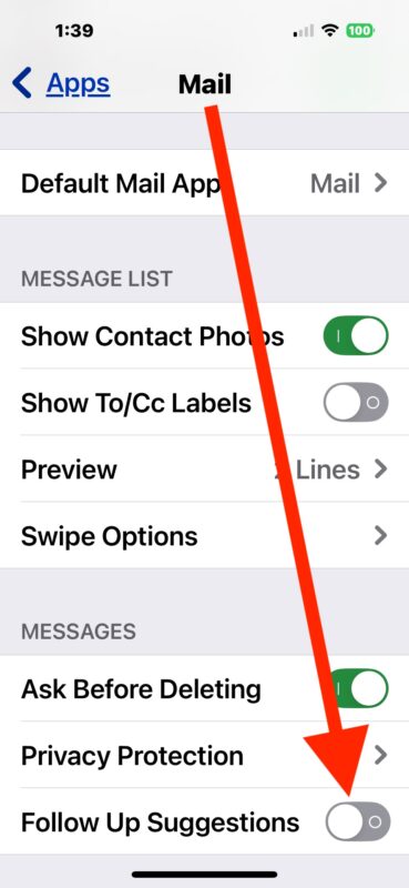 Как отключить предложения «Ответить» в Почте на iPhone и iPad