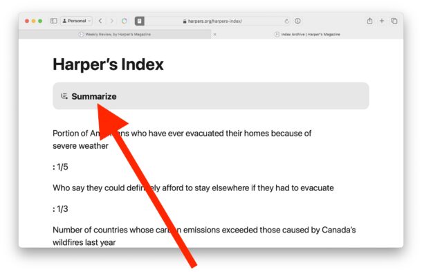 Как использовать функцию «Суммировать» на веб-страницах в Safari для Mac