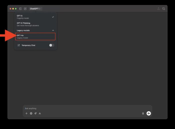 Как вернуться к ChatGPT 4o из ChatGPT 5 на Mac