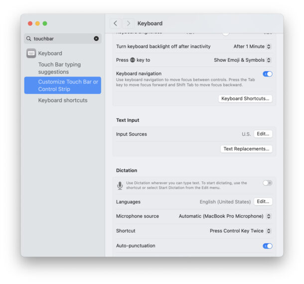 Любопытно, что когда Touch Bar внезапно перестает работать, все ее настройки в "Системных настройках" тоже пропадают - даже если процесс TouchBarServer в системе все еще запущен.