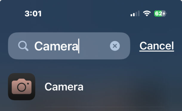 Потяните вниз от середины главного экрана (или нажмите кнопку «Поиск» внизу), введите «Камера» и запустите её прямо оттуда.