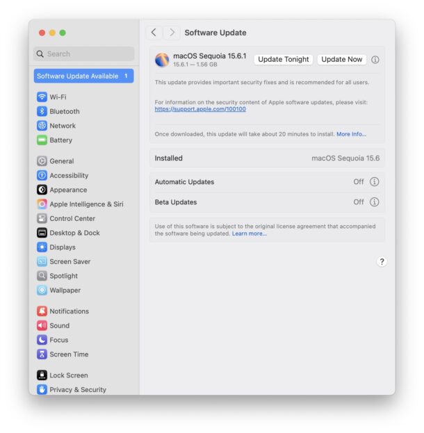 Как скачать и установить обновление безопасности macOS Sequoia 15.6.1