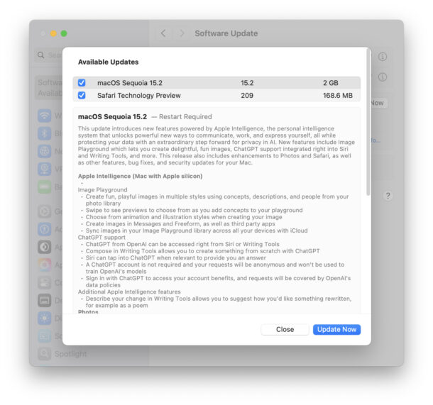 - Вы увидите доступное обновление «macOS Sequoia 15.2». Нажмите «Обновить сейчас», чтобы начать загрузку и установку.