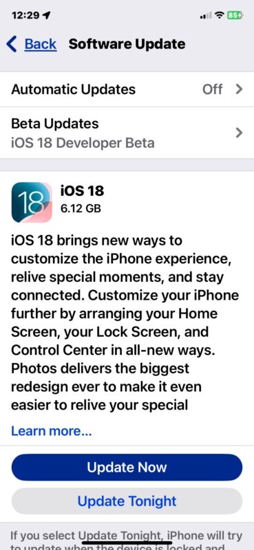 - Choose to “Update Now” to download and install iOS 18 or iPadOS 18