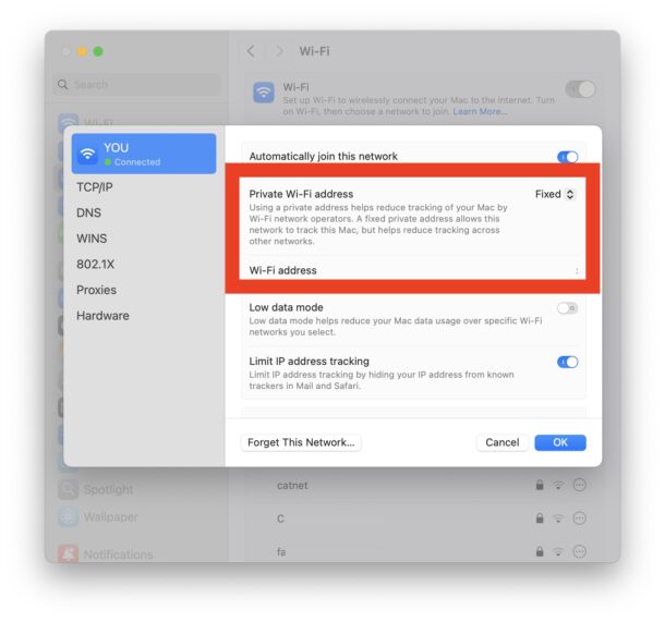 3. Установите для частного адреса Wi-Fi значение «Фиксированный»