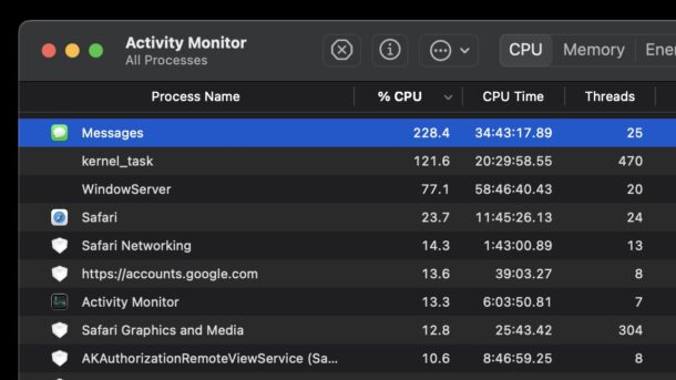 Если вы заметили, что «Сообщения» на Mac съедают кучу ресурсов, тормозят систему и без дела нагружают процессор, попробуйте вот что: