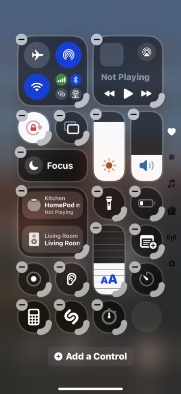 Настраивается он почти как домашний экран: вызовите Пункт управления, зажмите палец, пока элементы не начнут "дрожать". Теперь их можно перемещать, удалять или добавлять новые через кнопку "+".