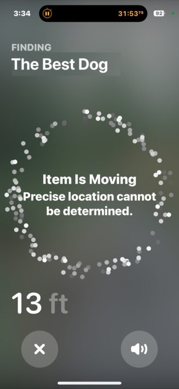 Если собака в пределах Bluetooth-досягаемости, можно использовать функцию «Точное определение» для быстрого поиска. Если же она быстро убежала и вышла из зоны действия - вы тоже это сразу увидите: