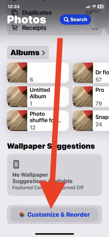 - В приложении «Фото» снова прокрутите вниз до «Настроить и изменить порядок».