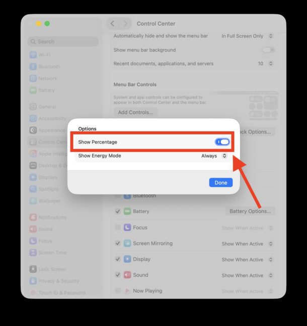 Как всегда показывать процент заряда в строке меню macOS Tahoe