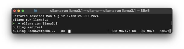 - Нажмите Return - начнётся загрузка манифеста Llama и зависимостей на ваш Mac.