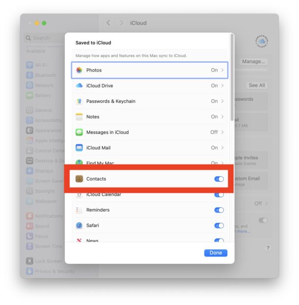Поставьте галочку, и синхронизация iCloud заработает снова. Дайте Mac немного времени, чтобы все подтянуть. Пары минут обычно хватает, и контакты возвращаются.