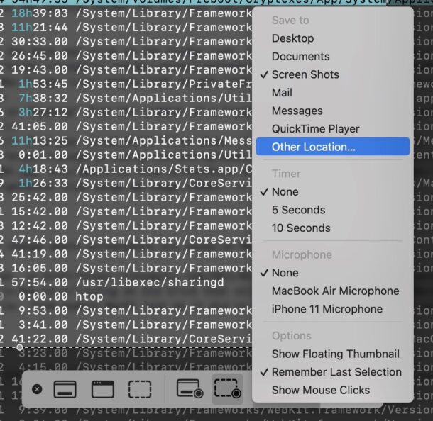Первый способ: нажмите Command+Shift+5, чтобы вызвать встроенный инструмент для создания скриншотов в macOS. Затем кликните «Параметры» - в появившемся меню можно выбрать новое место сохранения из списка готовых вариантов или указать свою папку.