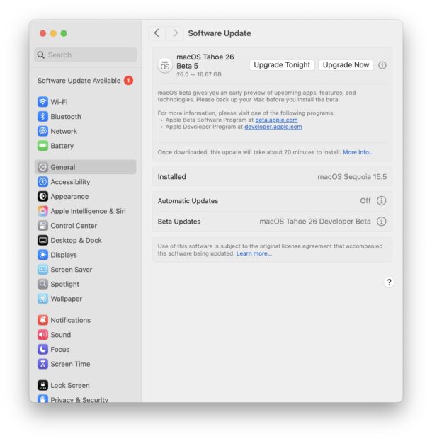 Как скачать и установить обновление MacOS Tahoe 26 Beta 5