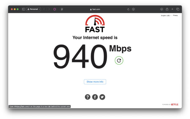 - Просто откройте fast.com в браузере. И не забудьте нажать "Show More Info", чтобы запустить тест на отдачу и измерить пинг.