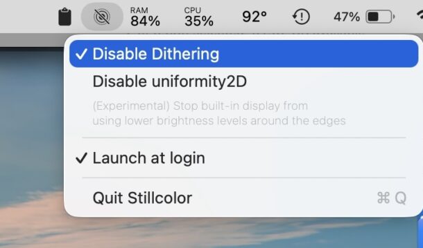 Вот тут-то и пригодится приложение StillColor для Mac. Оно позволяет отключить дизеринг цветов, что потенциально может облегчить симптомы усталости и напряжения глаз для тех, кого затрагивает это мерцание.