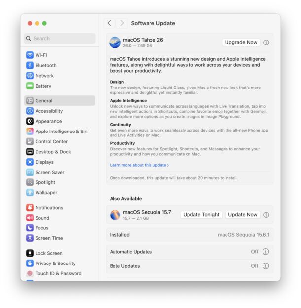 Там же вы увидите обновления для предыдущих версий macOS, например, Sequoia 15.7 и Sonoma 14.8, на которые тоже можно обновиться.