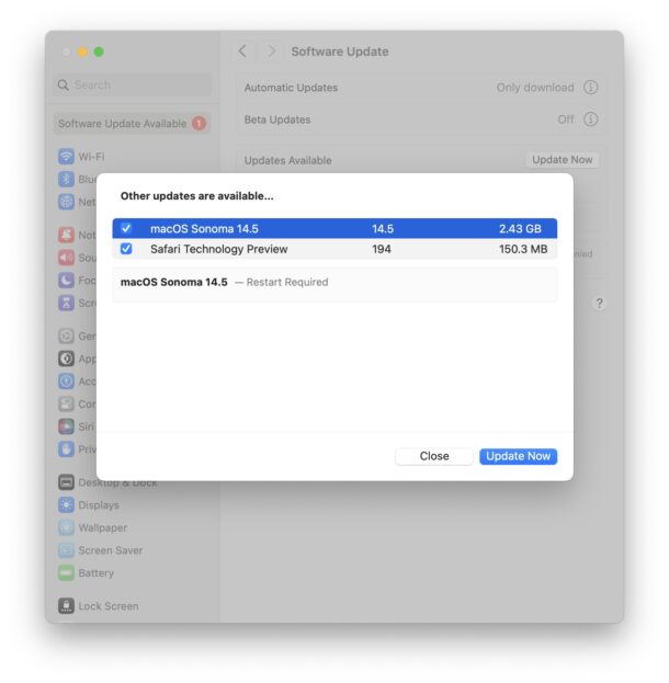 Размер обновления - примерно 2.5 ГБ. После загрузки Mac перезагрузится.