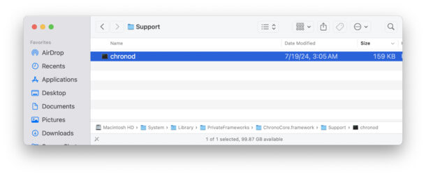 Процесс chronod и его агент запуска — часть фреймворка ChronoCore, который расположен на системном уровне macOS.